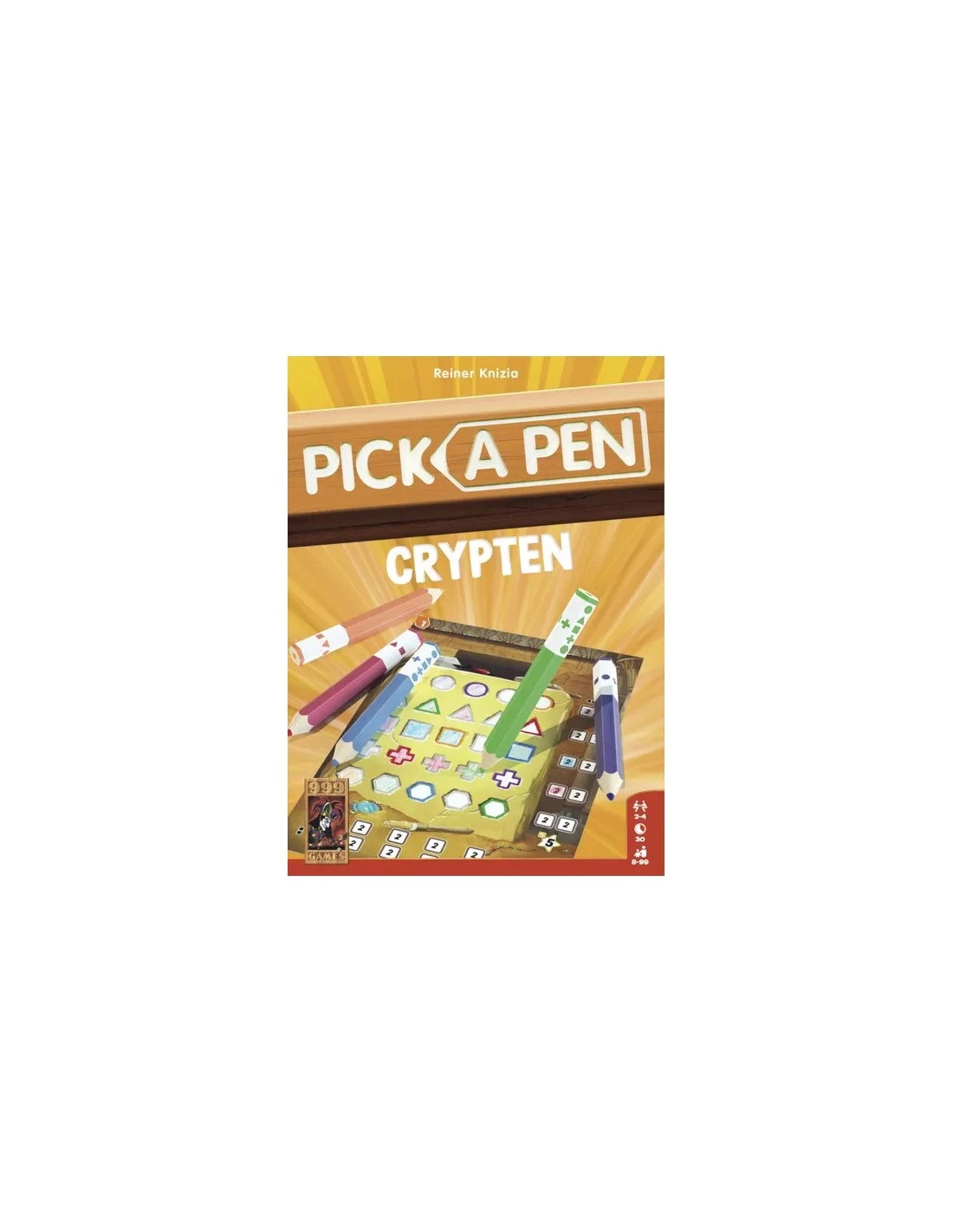 Each turn in Pick a Pen: Crypten, the active player rolls the five colored pencils, then chooses one and marks spaces on their individual player sheet. Each other player in turn drafts a pencil and uses it. Pencils show symbols on their different sides, and the symbols on top of the chosen pencil determine what players do on their sheets.