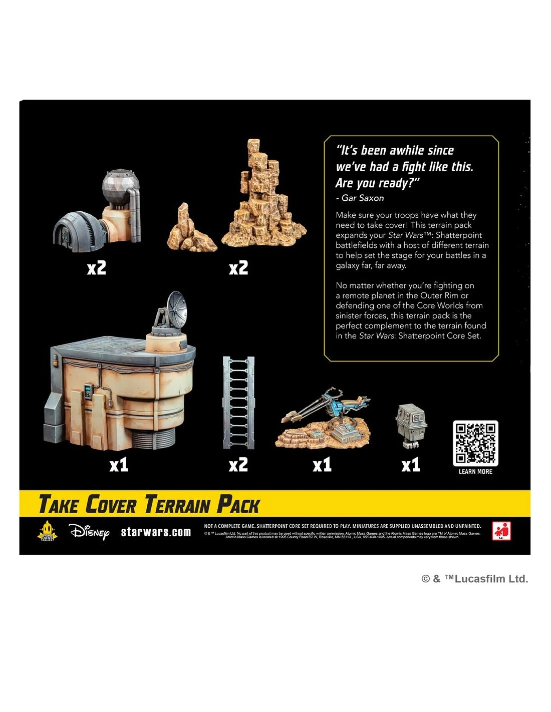The battlefields of Star Wars: Shatterpoint become even more thematic with this terrain pack! Containing a host of different terrain, including a Swoop Bike, a GNK Power Droid, and a generator, the terrain pieces players find here will help set the stage for their battles while also giving their troops plenty of places to take cover