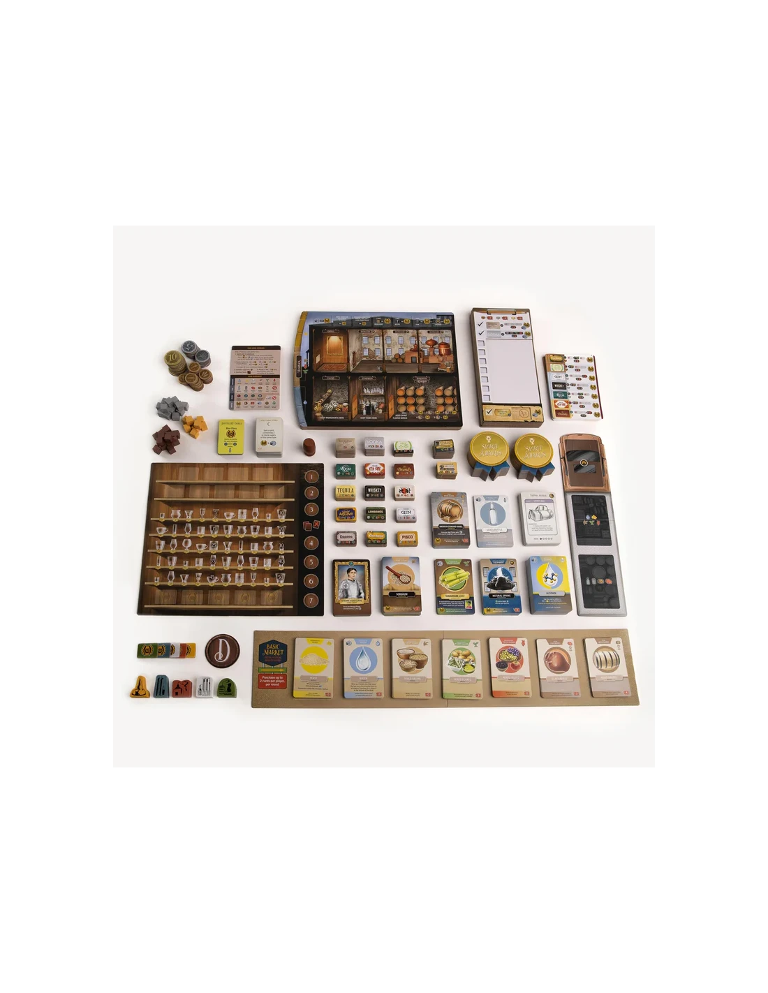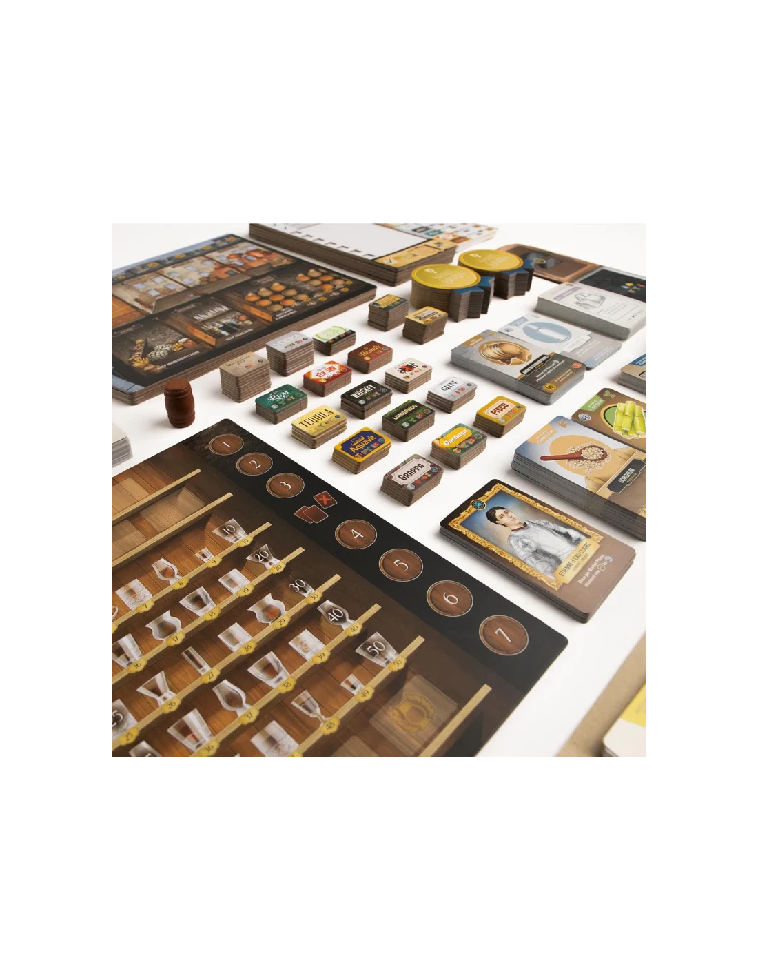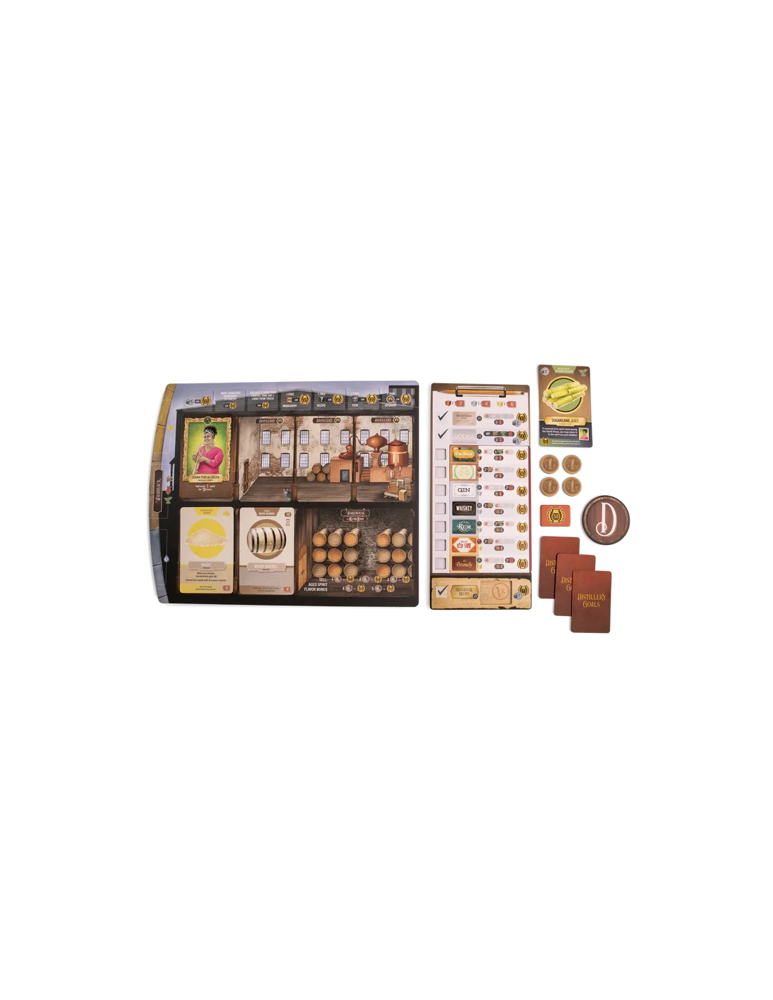 Achieve the title of Master Distiller by having the most victory points at the end of the game. Points are obtained by distilling and selling spirits.