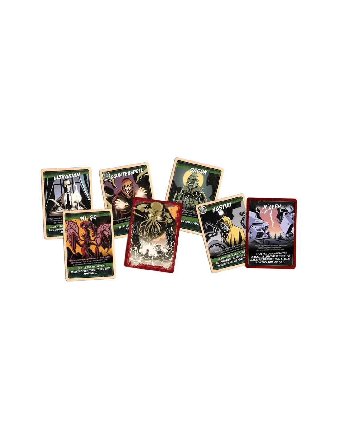 If you draw a Cthulhu card, you must play it immediately, and if you can’t pass it to another player or get it back into the deck, you lose the game (and Cthulhu destroys the earth, so basically everybody loses, but you die first, so there is that)!