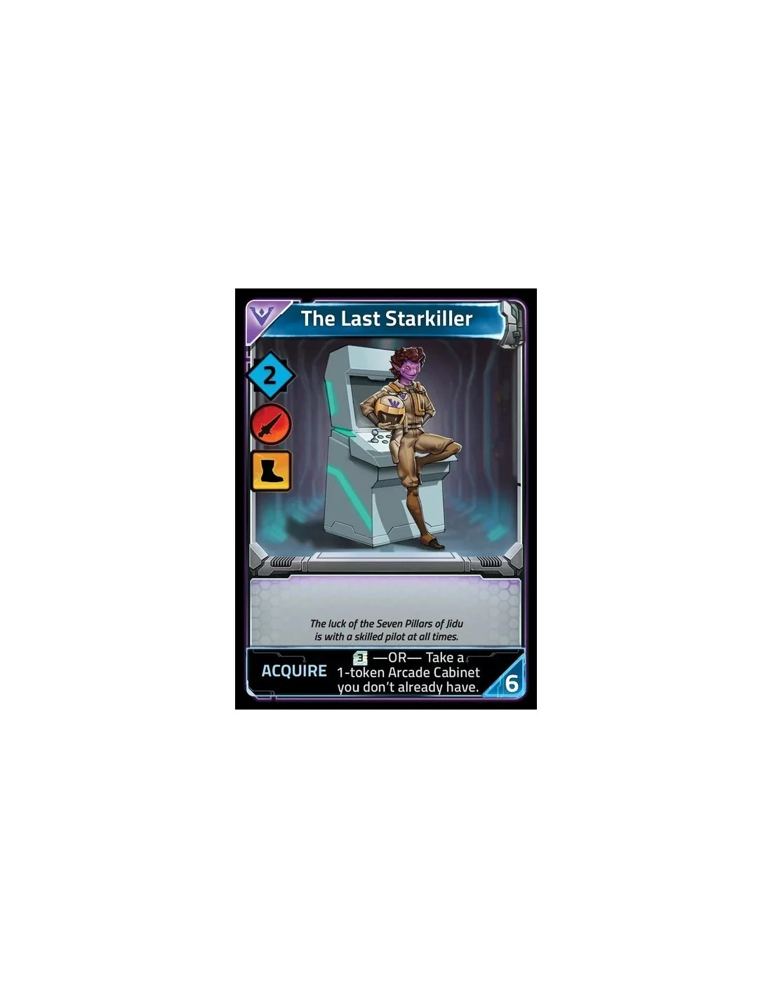 Clank! In! Space!: The Last Starkiller is a promotional card you can use with the Pulsarcade expansion, with this all-purpose card giving you either 3 credits or a 1-token arcade cabinet when you acquire it.